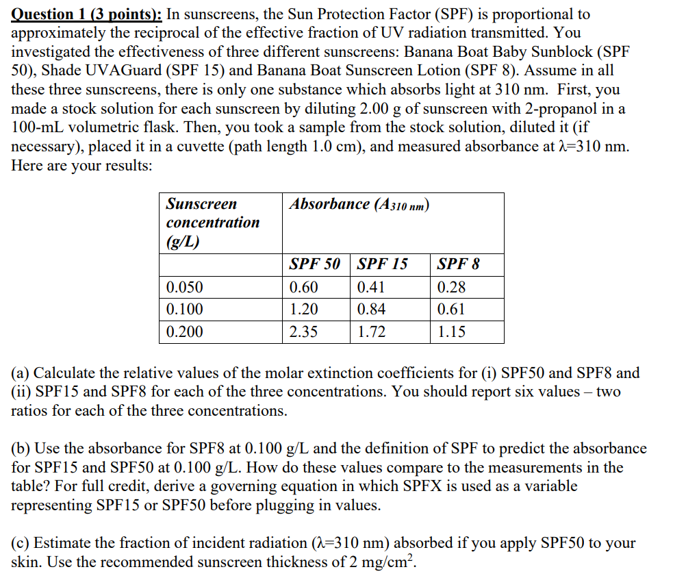 Solved Question 1 3 Points In Sunscreens The Sun Chegg Com